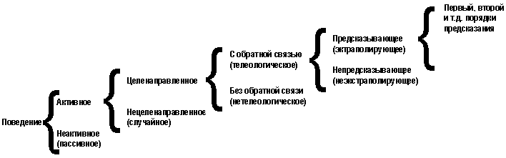 Активное поведение можно подразделить на два класса: нецеленаправленное (или случайное) и целенаправленное. Термин «целенаправленное» здесь означает, что действие или поведение допускает истолкование как направленное на достижение некоторой цели, т.е. некоторого конечного состояния, при котором объект вступает в определенную связь в пространстве или во времени с некоторым другим объектом или событием. Нецеленаправленным поведением является такое, которое нельзя истолковать подобным образом.
