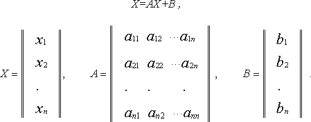 Пример. Поведение ряда различных реальных систем (например, соединенных между собой проводников с сопротивлениями x1, x2, ..., xn или химических соединений с концентрациями x1, x2, ..., xn участвующих в реакции химических реагентов) описывается системой линейных алгебраических уравнений, записываемых в матричном виде: