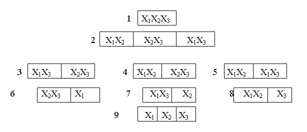 Пусть система некоторого вычислительного комплекса задана на трех переменных X1, X2, X3 представляющих состояние трех устройств комплекса: Xi = 0, если в момент наблюдения устройство не работает и Xi = 1 в обратном случае.