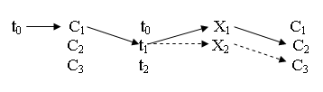 Пусть в начальный момент наблюдения t0 система находилась в некотором состоянии, который будем называть начальное состояние Ct0. Множество всех возможных начальных состояний есть декартовое произведение t0 × C. Множество всех возможных входных сигналов в моменты времени t1, t2, ... тоже есть декартово произведение Т × Х.